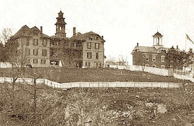 The building itself is the most imposing in town save one — graceful in architectural proportion, tastefully painted, and commanding position. For comfortable arrangement it is unsurpassed — rooms large, well ventilated, and uniform temperature secured throughout the year by the use of hot air pipes with which the building is supplied.