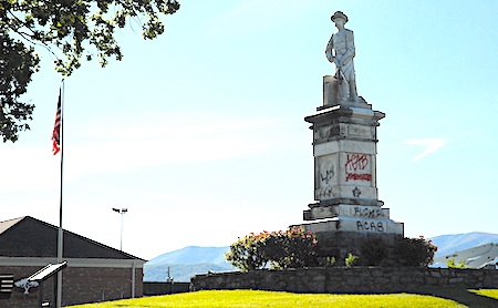LURAY, June 1 — Early Monday morning, two Confederate statues in Luray were vandalized with profane anti-police graffiti spraypainted onto the base of the stone structures.
