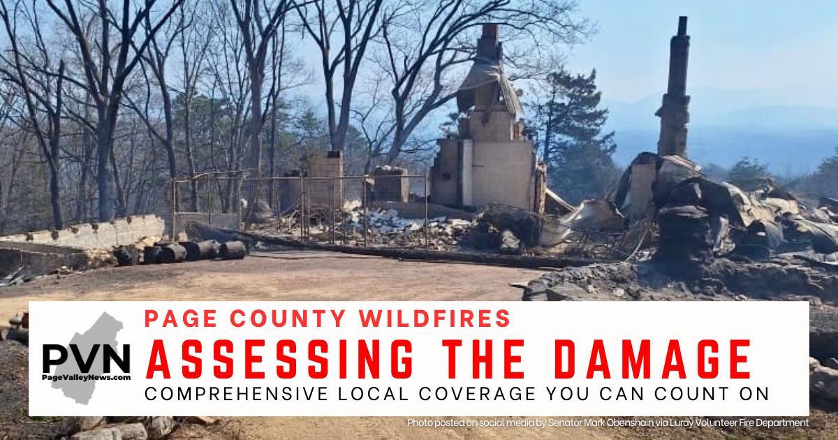 LURAY, March 25 — After completing an initial assessment of the damage from recent wildfires in the Page Valley around 4 p.m. Sunday, county officials released a report stating that 10 residences were “destroyed” by the flames, another received “major damage” and three others were “affected.”