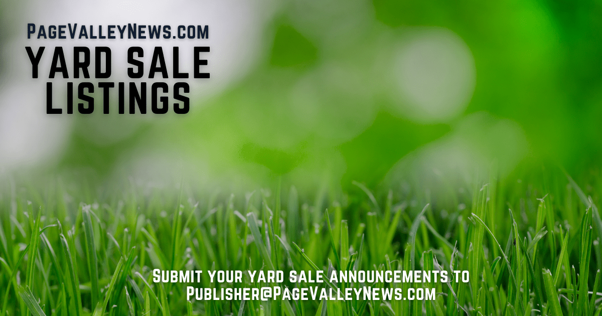 Send your Yard Sale listings to publisher@pagevalleynews.com
