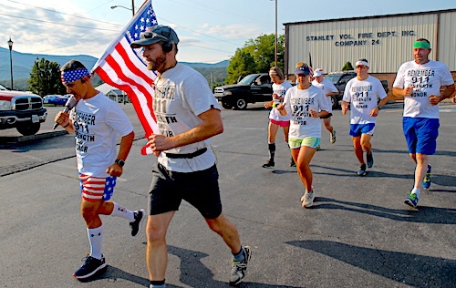 Russell Allen, a Stanley volunteer firefighter for the last 25 years and a maintenance worker for the Town of Luray, came out to run with the group to support firefighters across the country.