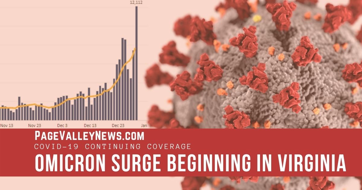 LURAY, Dec. 29 — On Wednesday, the Virginia Department of Health reported 12,112 new cases of COVID-19 statewide — the highest one-day total of the entire two-year pandemic. The Lord Fairfax Health District also hit a new pandemic high with 368 new cases reported in a single day. Frederick County alone reported 157.