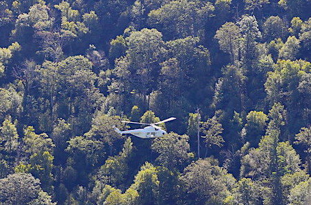 September 23, 1961 — The dense nature of undergrowth and trees in the Kite Hollow area drained by the East Hawksbill is indicated by the length of time it took searching parties to locate the wreckage of a Civil Air Patrol plane lost in the area on Sept. 9.